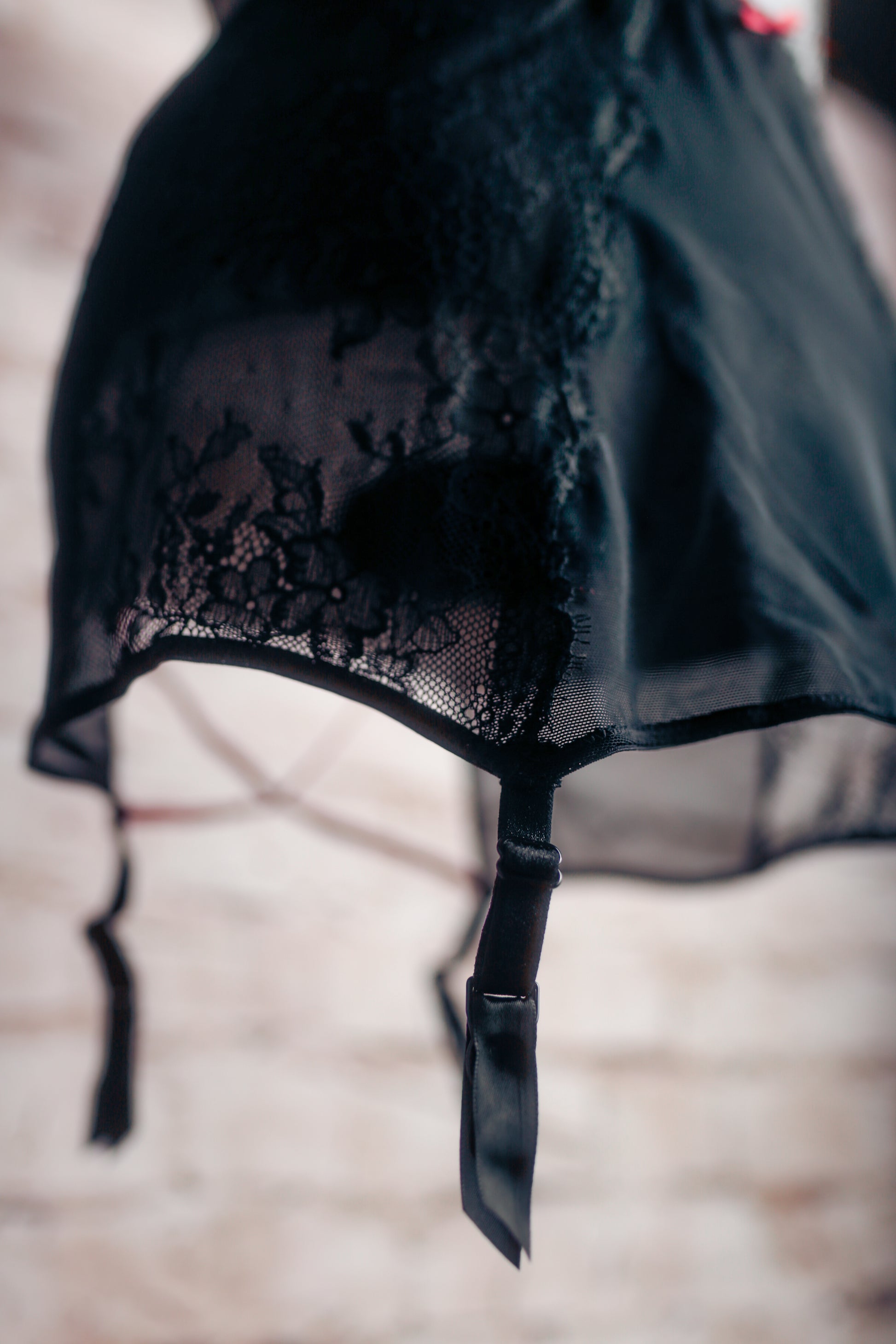 Adore Me Milena Lace-up Garter Suspenders Small Black NEW