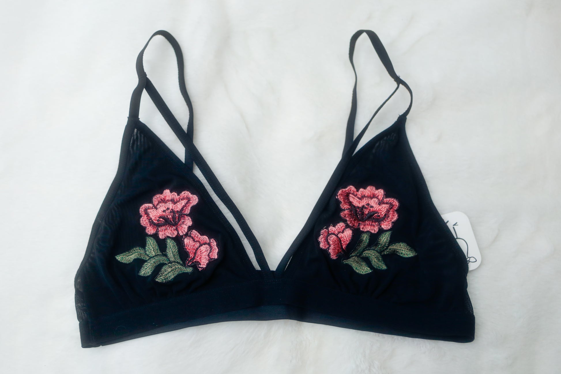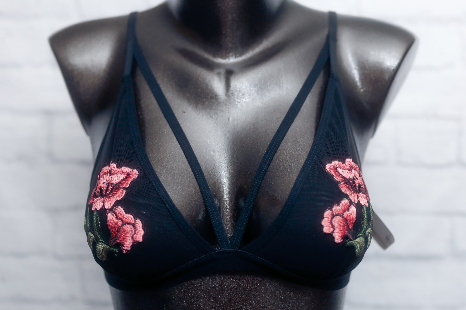 Cheeky Bird Unlined Embroidered Sheer Wireless Bralette Large 34-36 A-D Cup NEW