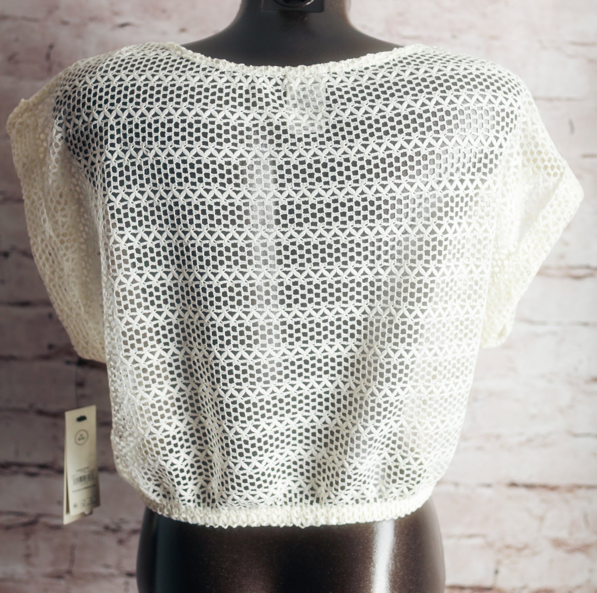 Crochet Sheer Open Mesh Stretch Top White NEW
