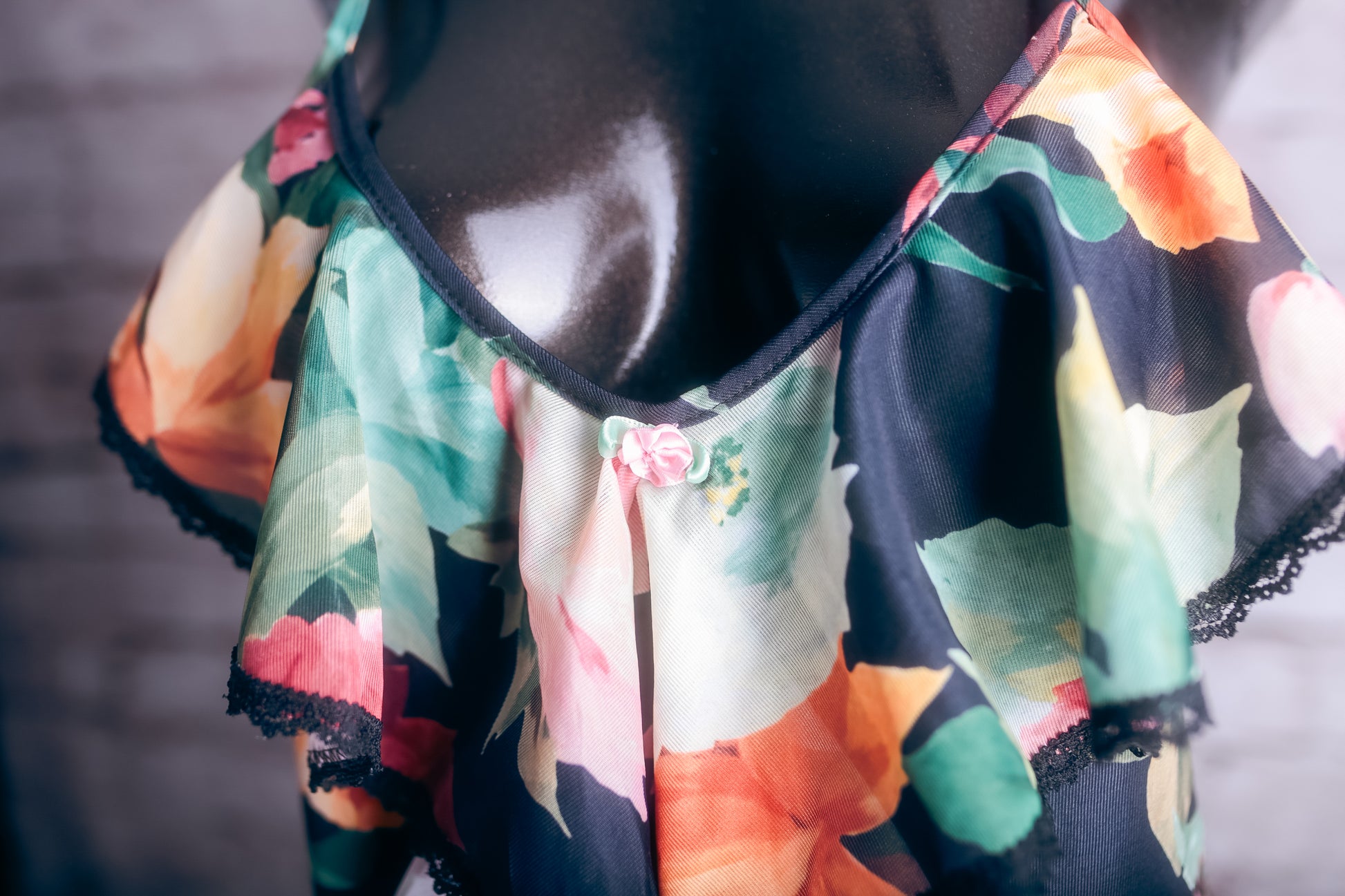 Feather Bed intimates Vintage Floral Ruffled Chemise and Shorts Lingerie Set Small