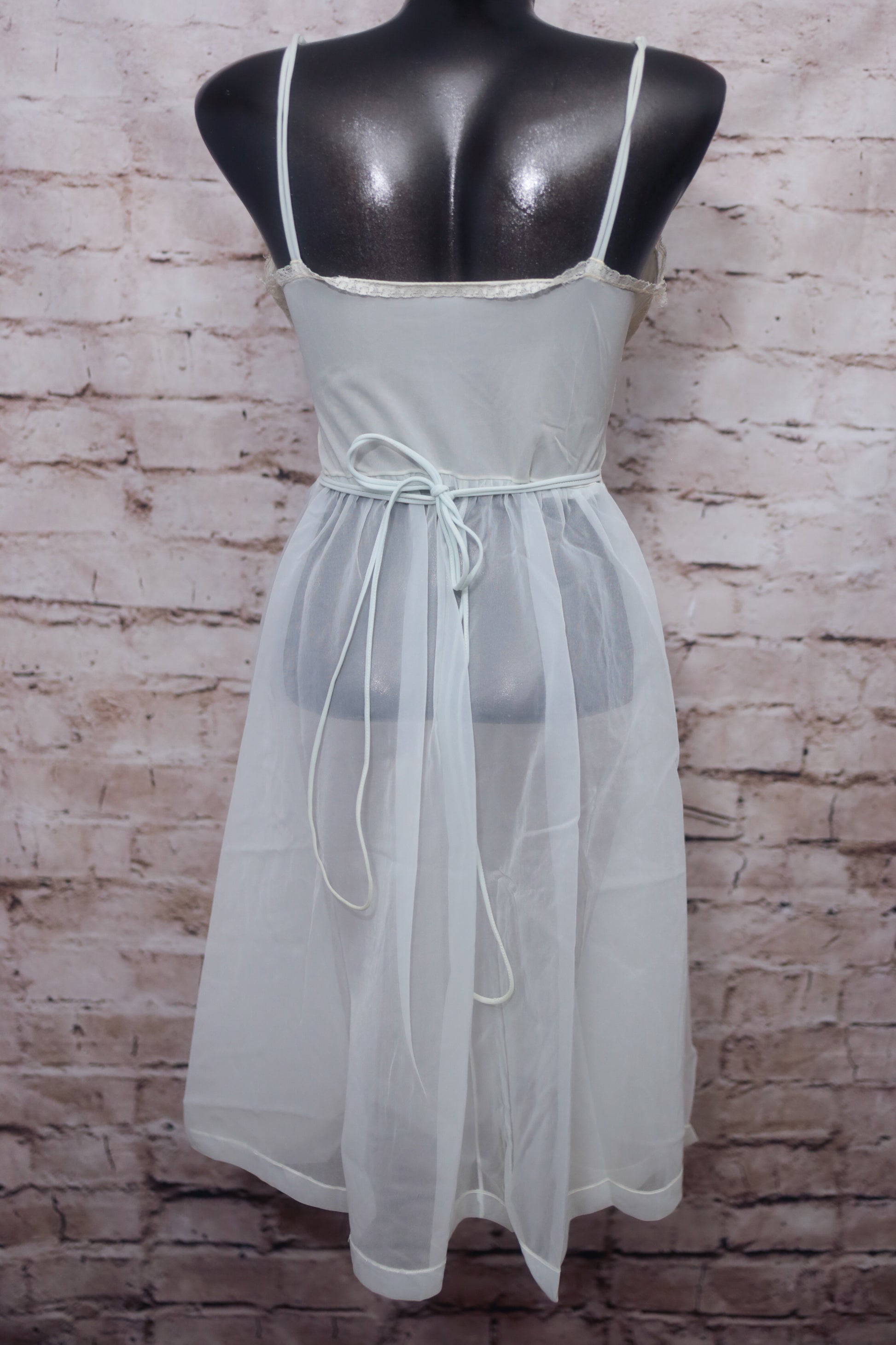 Henson Kickernick Vintage Chemise Babydoll Lingerie Sheer Baby Blue 32 Small