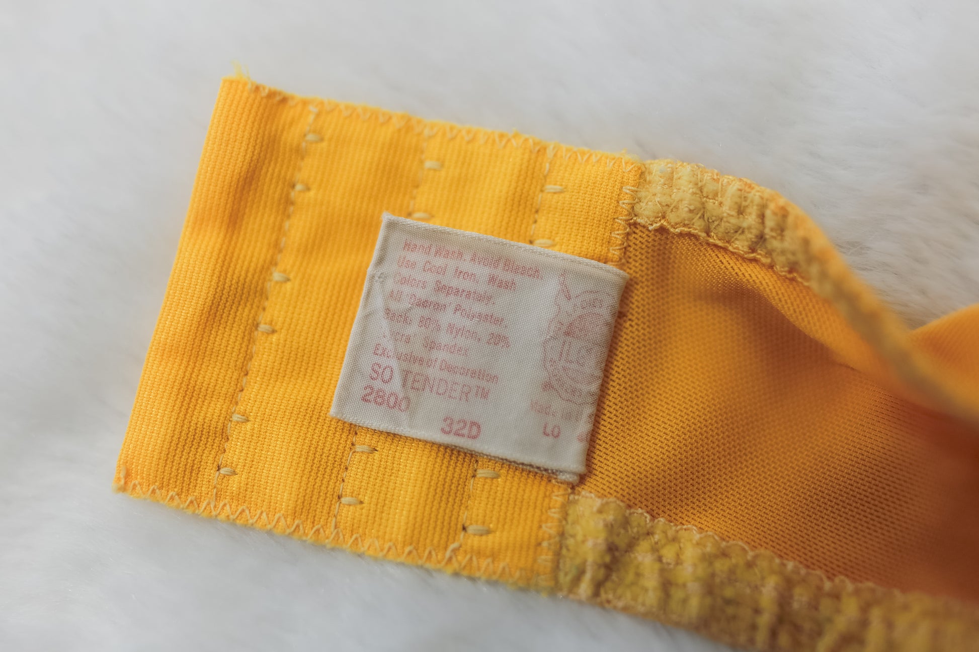 Maidenform 32D Sea Dream 1960s Vintage Unpadded Bra Yellow Lace