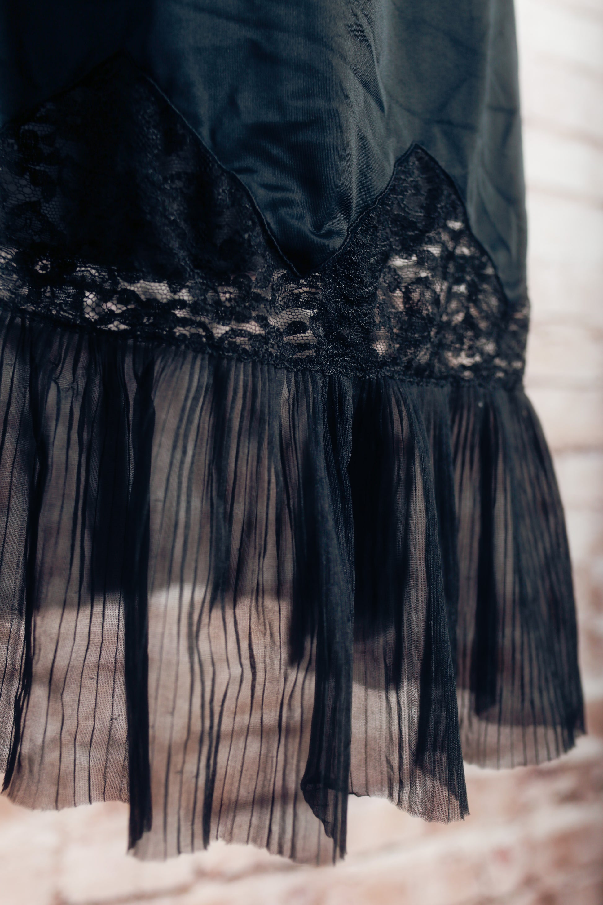 Nan Flower Vintage Satin Lace Pleated Hem Half Slip