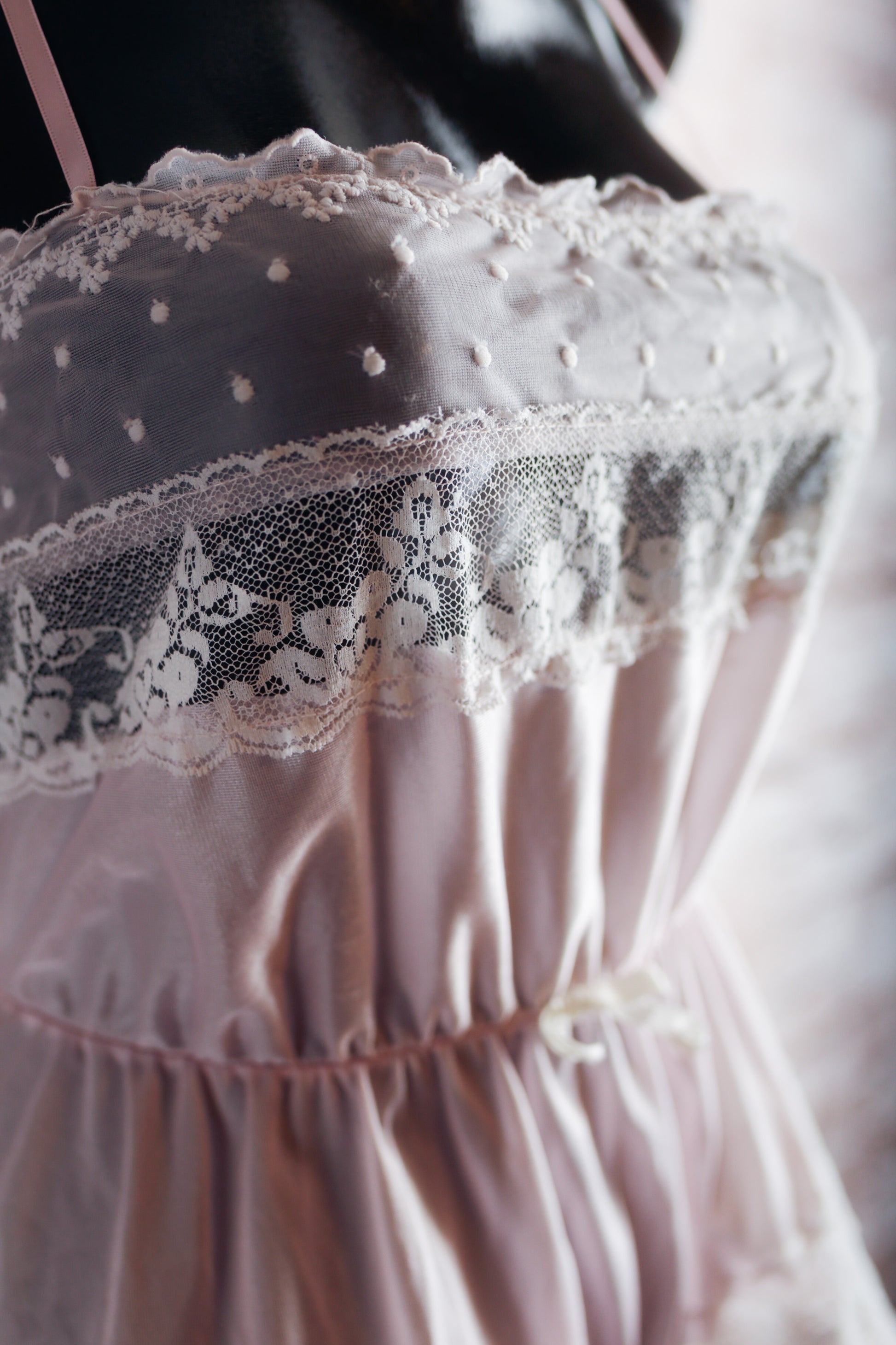Sears Vintage Cottage Fairy Sheer Mesh Satin Teddy Romper