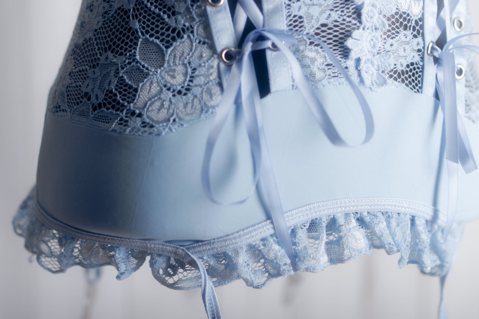 Sheer Lace Babydoll Chemise Lingerie with Suspender Straps Medium Light Blue NEW