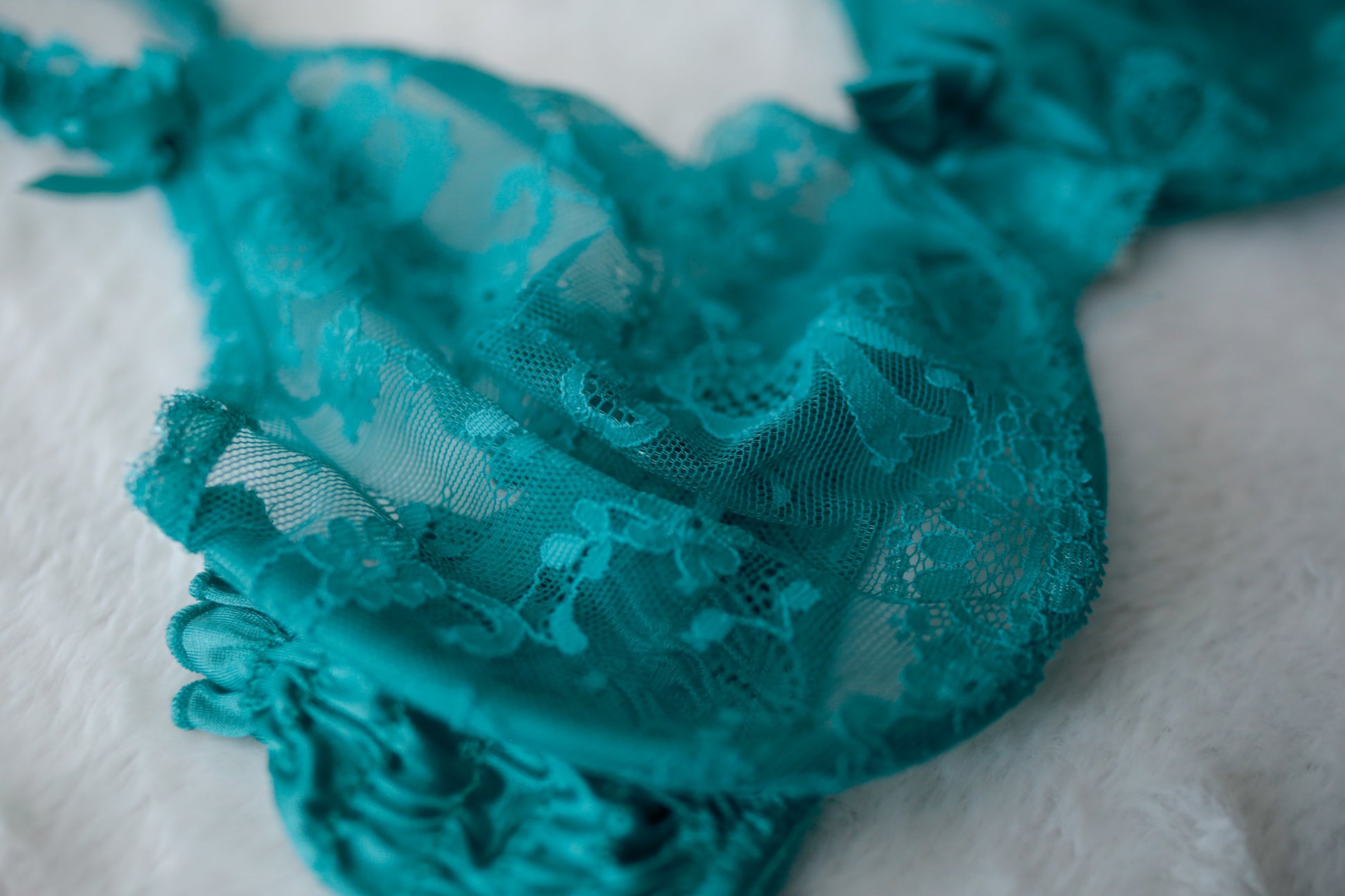 Victoria's Secret 36C Vintage Gold Tag Demi Sheer Unpadded Bra Teal Lace