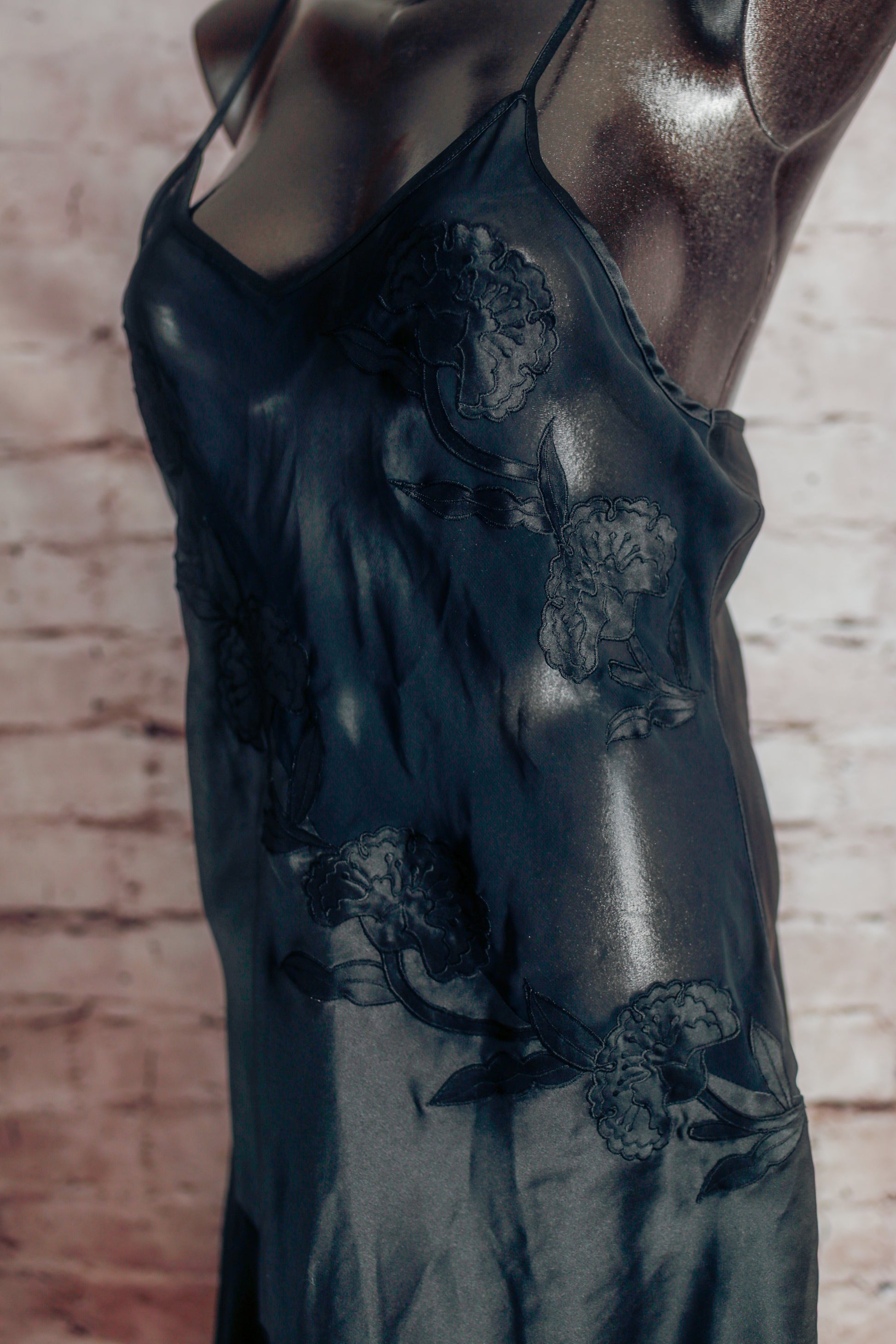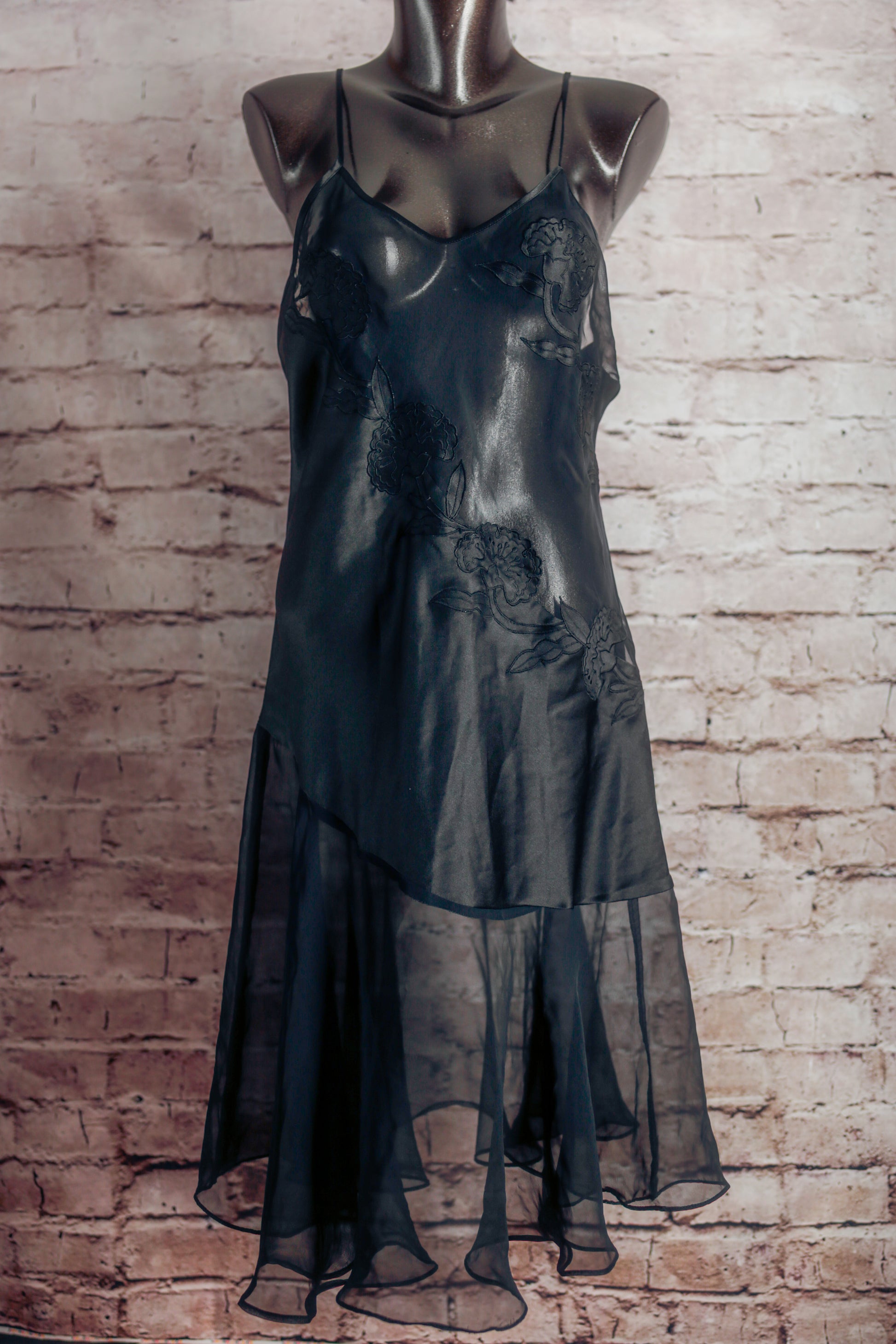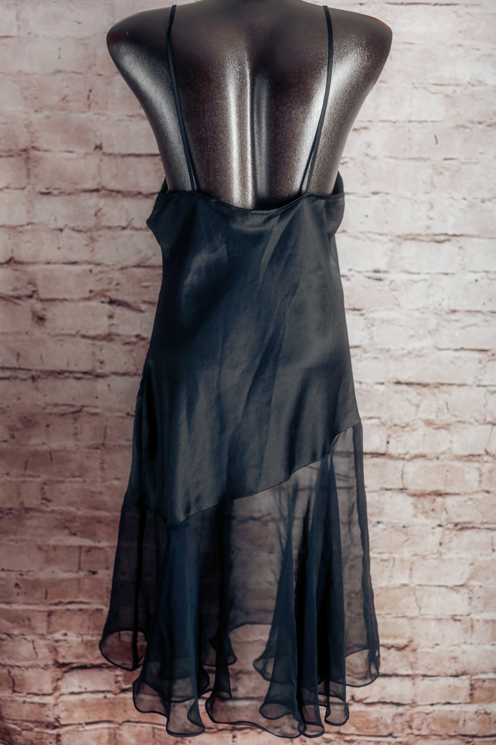 Victoria's Secret Vintage Gold Label Black Sheer Mesh Satin Chemise Nightgown Lingerie Medium