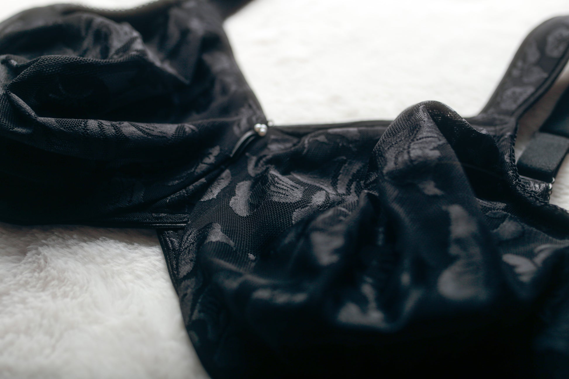 - Black lace with soft, seamless lining