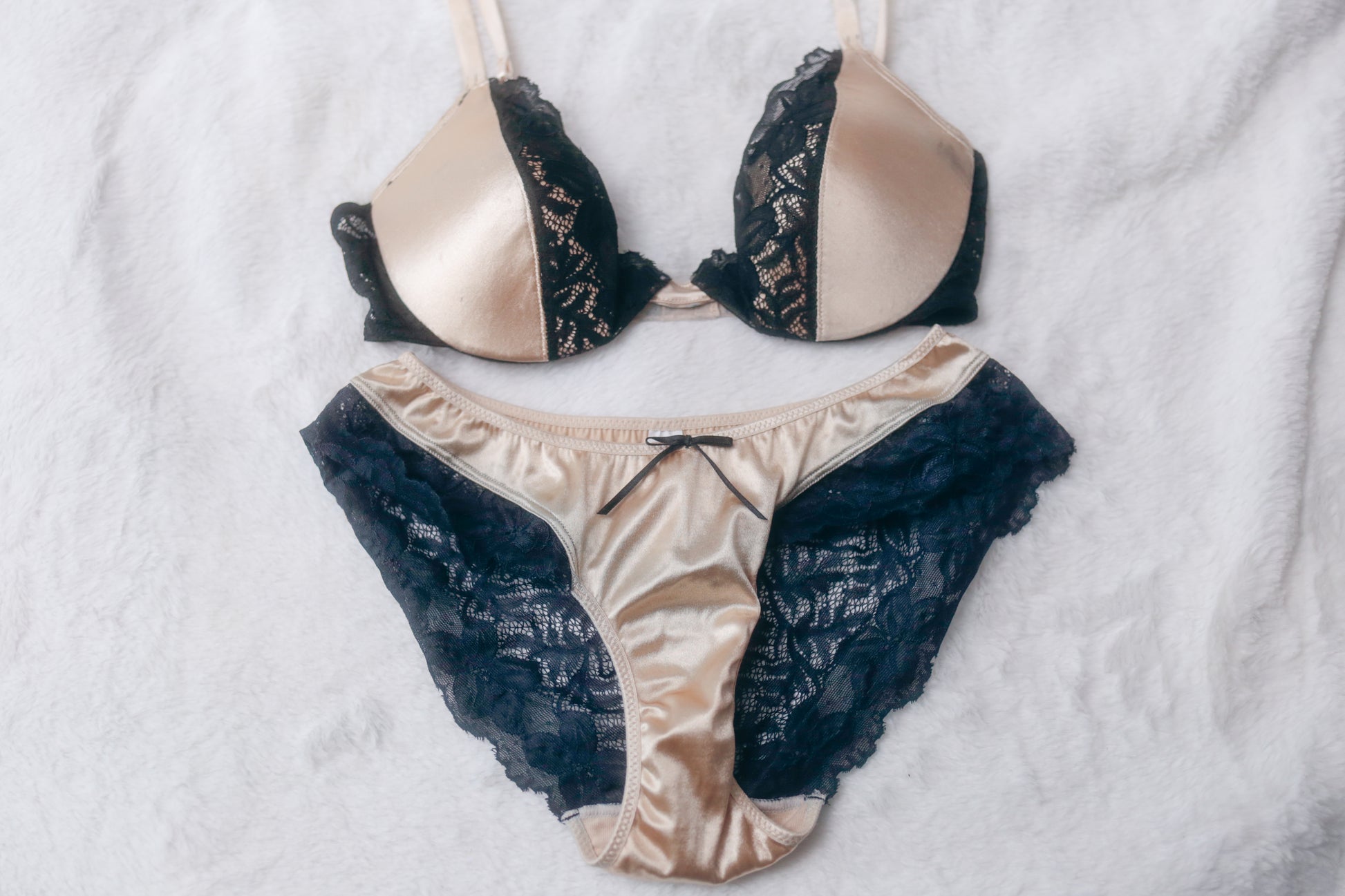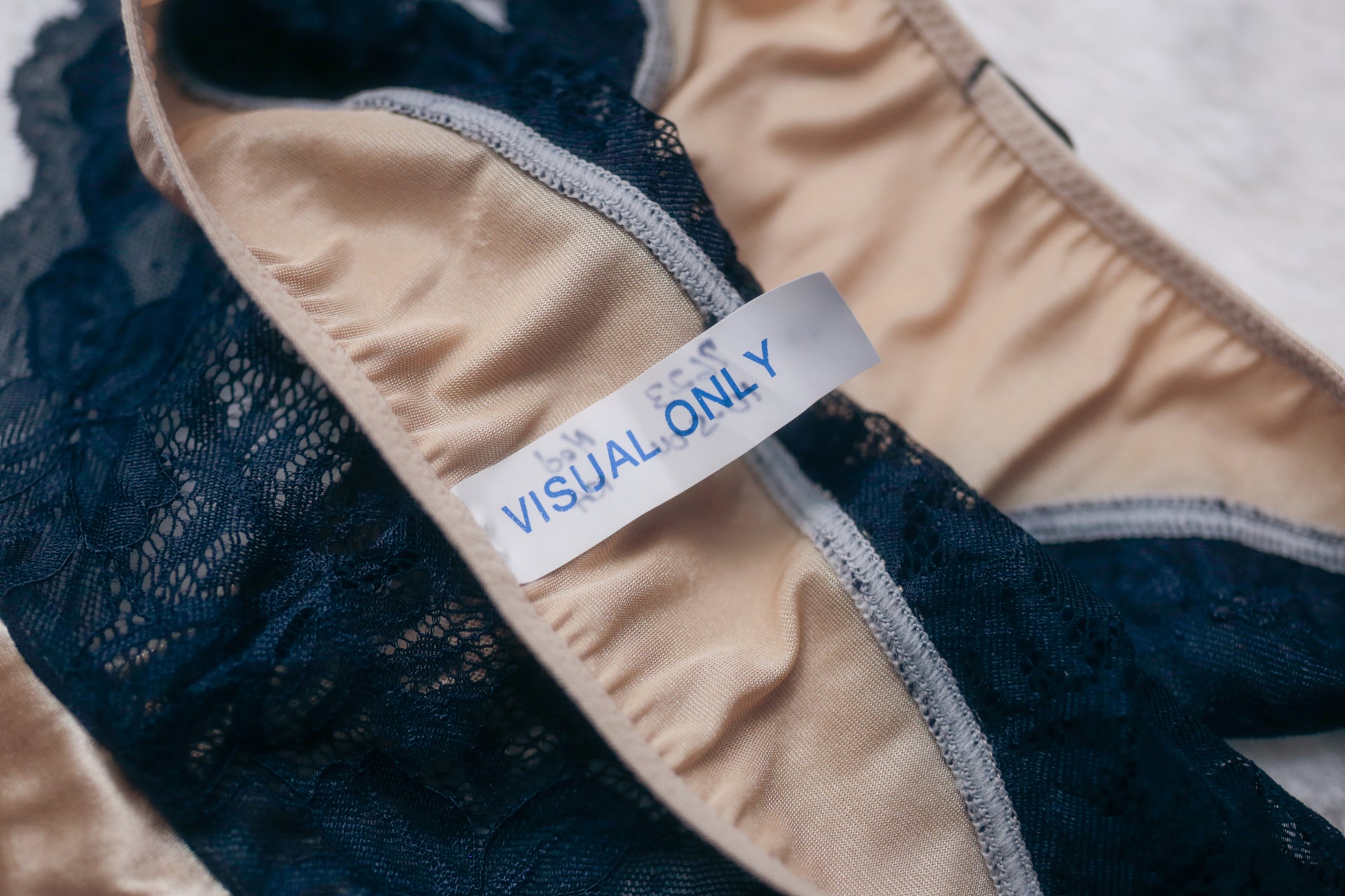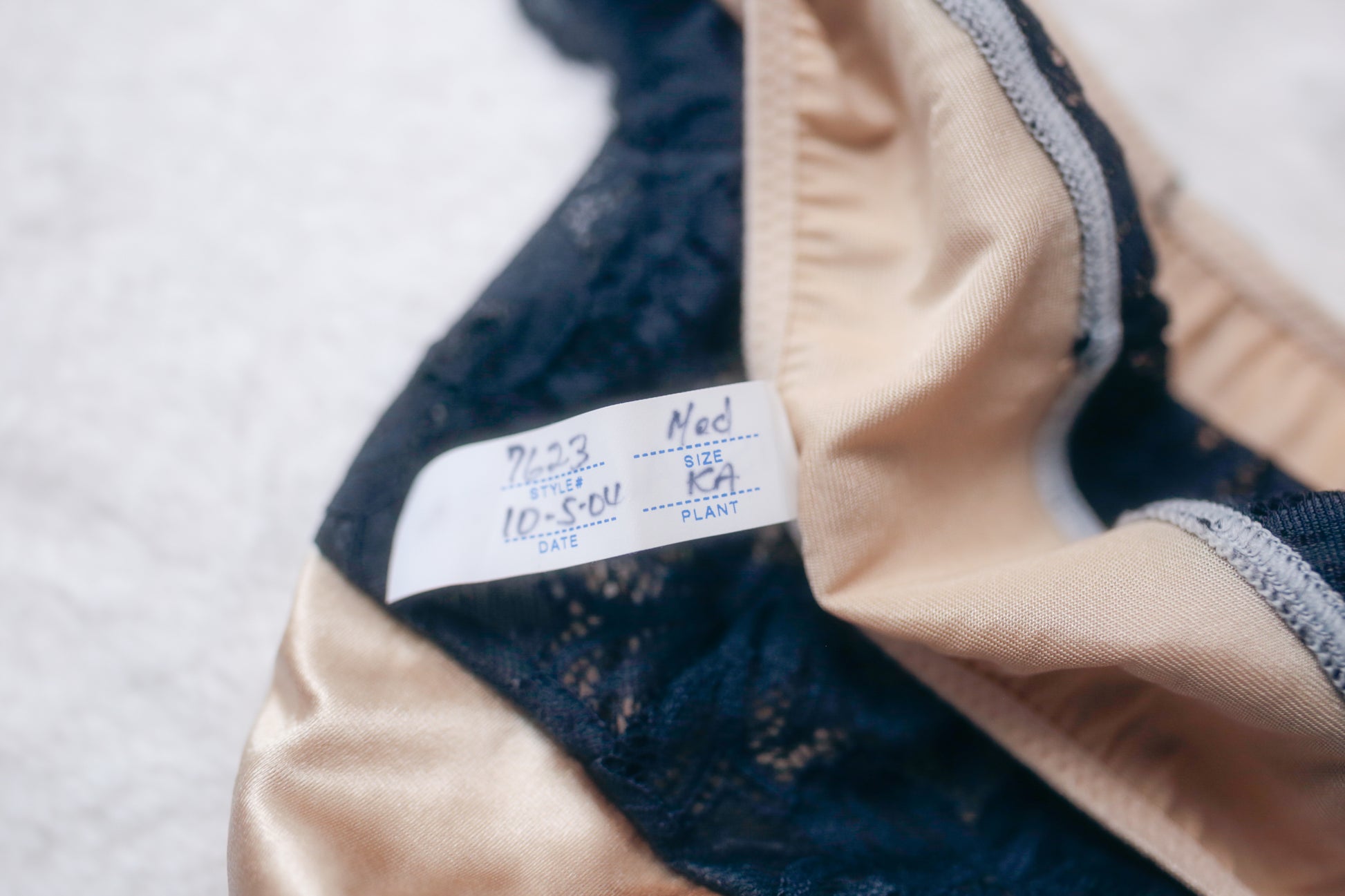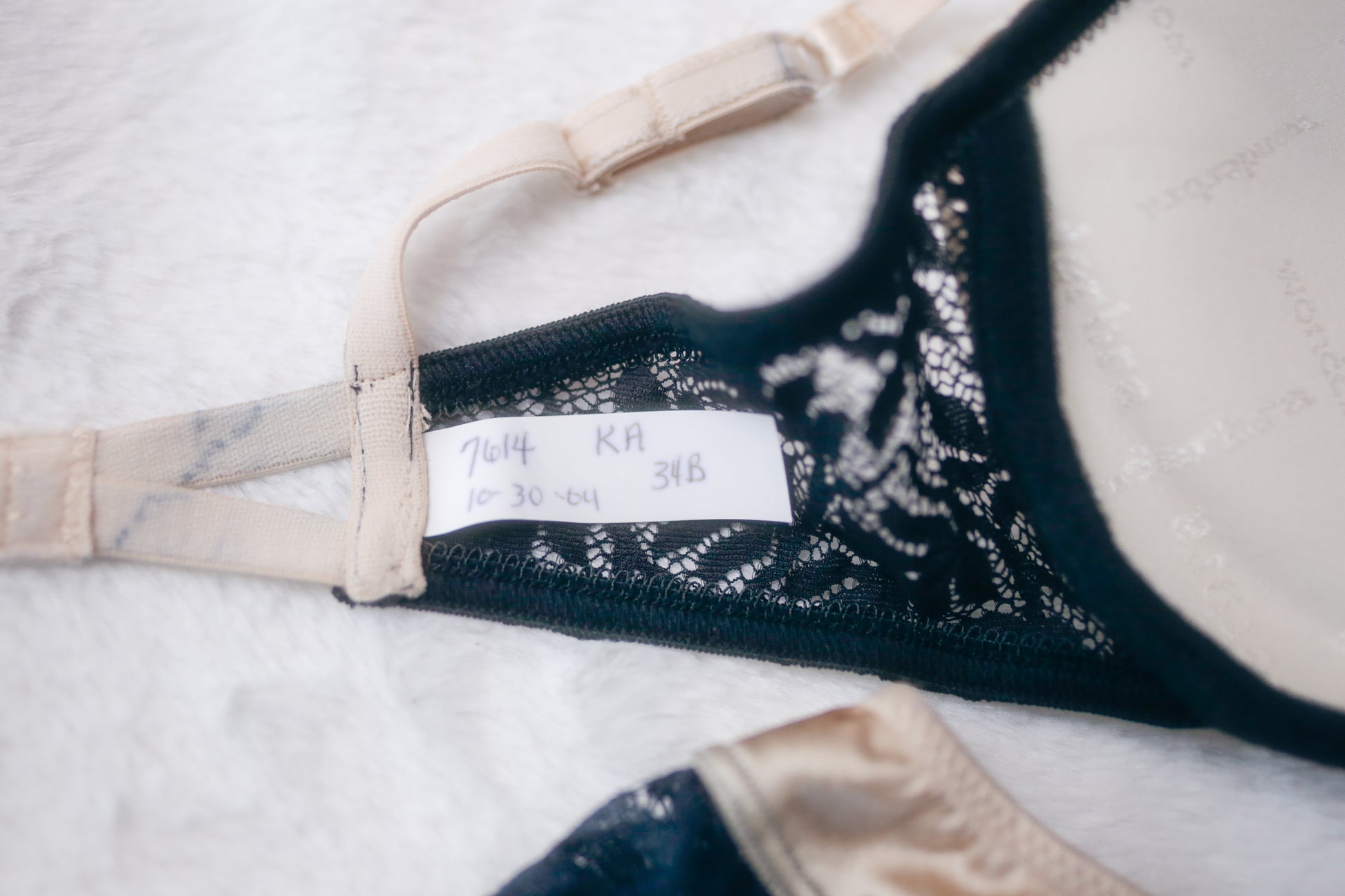 "Visual only" bra and panty set - used for product line samples, development and shows. Super rare and cool! Some of the ink from the handwritten tags has transferred to the straps in the past 20 years.